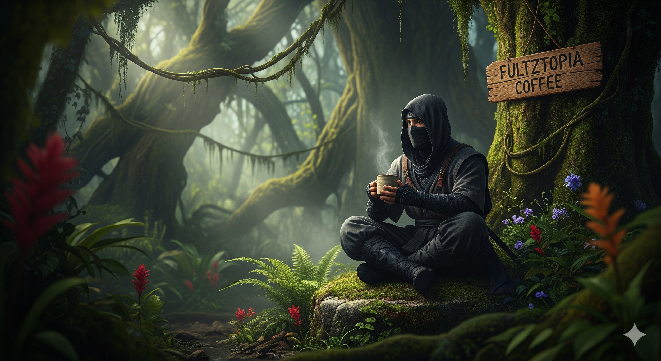 Our story began in the deep forests of Fultztopia, where we lived a life of purposeful reclusion. For years, we trained in the way of the ninja , seeking a life as far away from civilization as possible. This solitude was our peace.